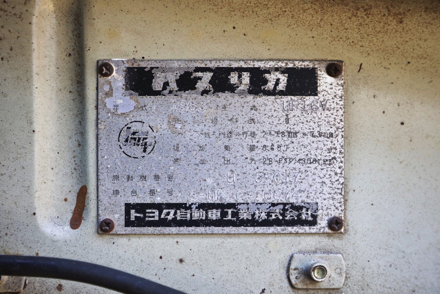 | 車台番号 | UP16-30074 |